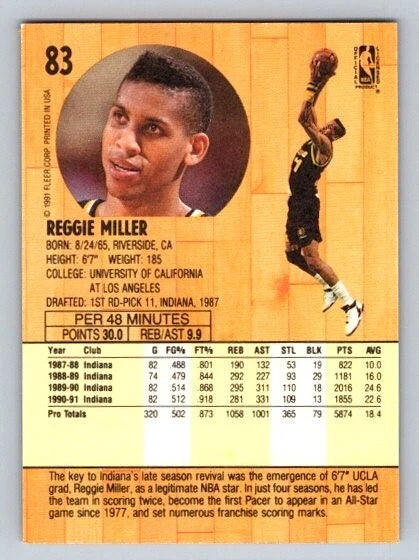 Reggie Miller 1991 1992 Fleer Series Mint Card #83
