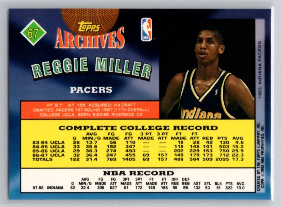 Reggie Miller 1992 1993 Topps Archives Series Mint Card #67