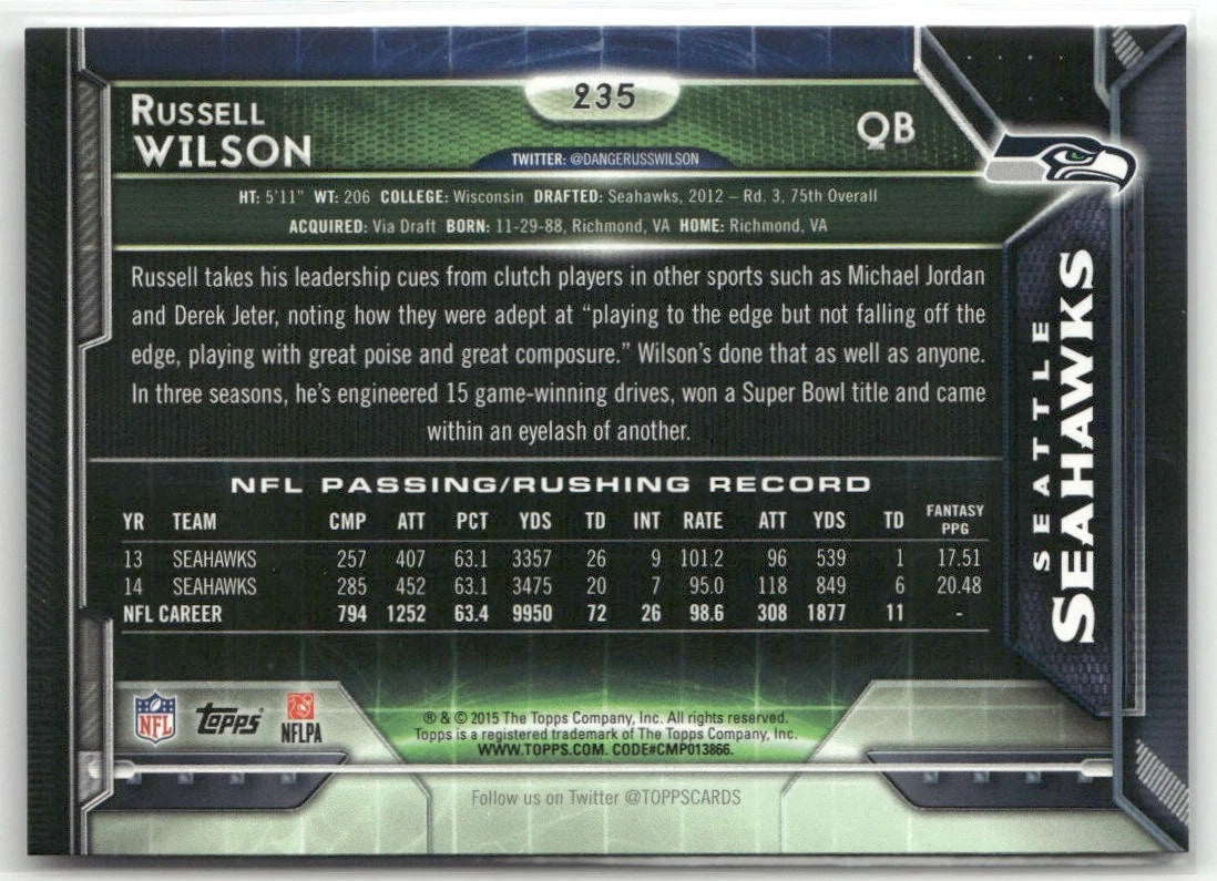 Russell Wilson 2015 Topps Series Mint Card #235