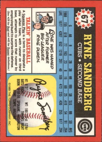 Ryne Sandberg 1989 Topps UK Mini Series Card #67