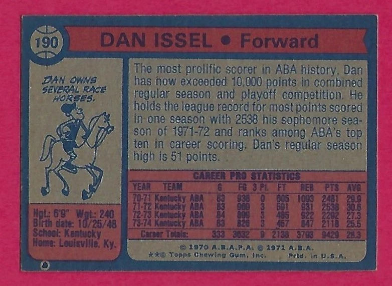 Dan Issel 1974 1975 Topps All Star Series Card #190
