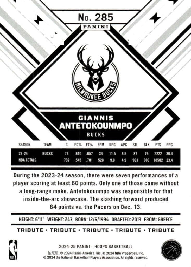 Giannis Antetokounmpo 2024 2025 NBA Hoops Series Mint Tribute Card #285