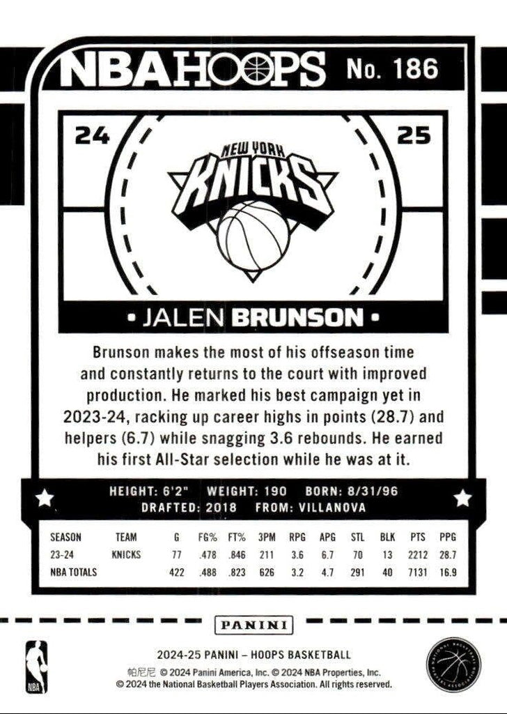 Jalen Brunson 2024 2025 NBA Hoops Series Mint Card #186