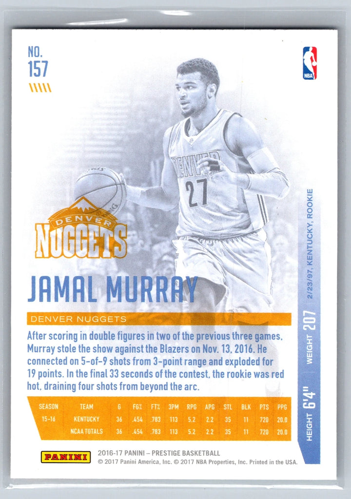 Jamal Murray 2016 2017 Panini Prestige Series Mint Rookie Card #157