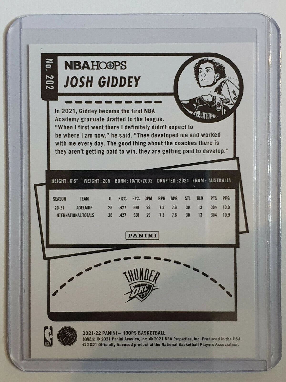 Josh Giddey 2021 2022 Hoops Series Mint Rookie Card #202