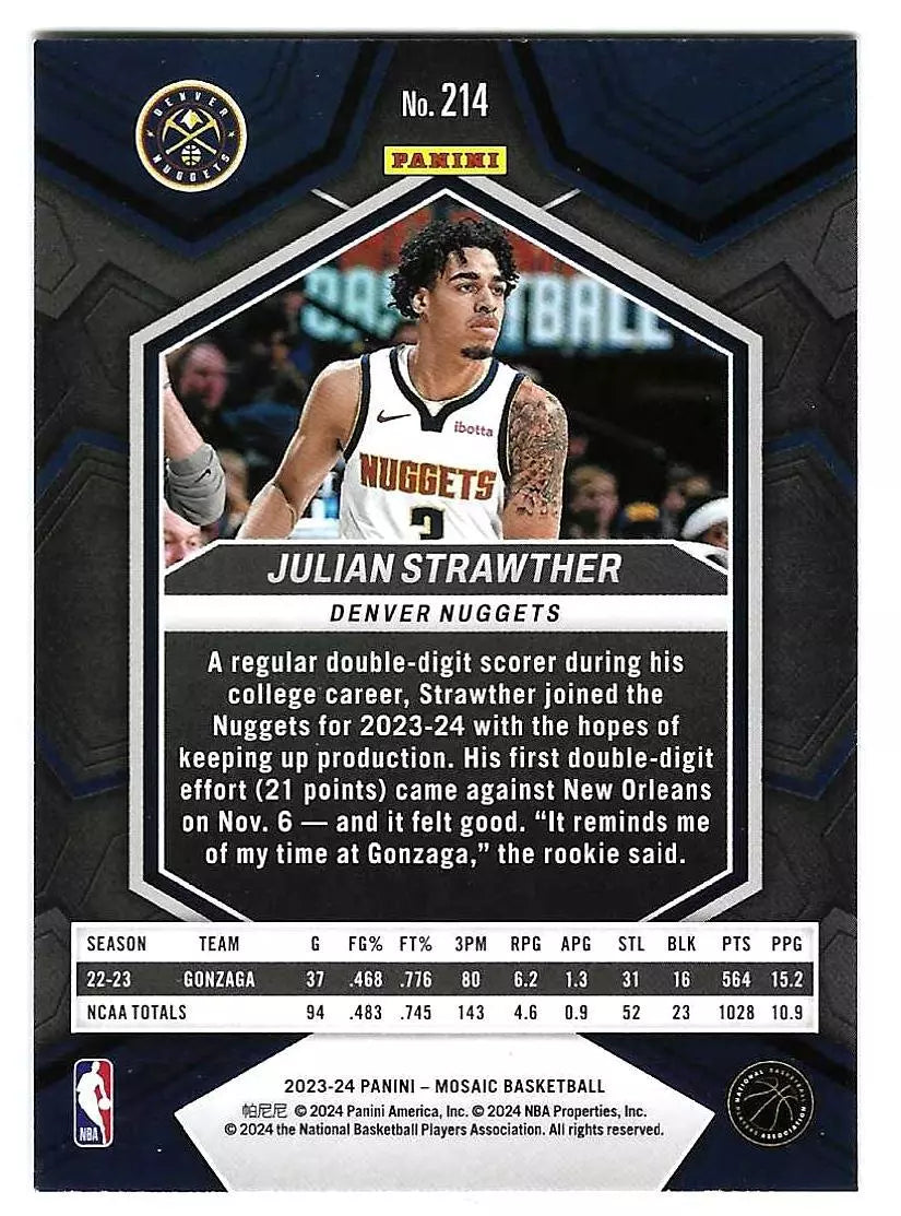 Julian Strawther 2023 2024 Panini Mosaic Mint Rookie Card #214