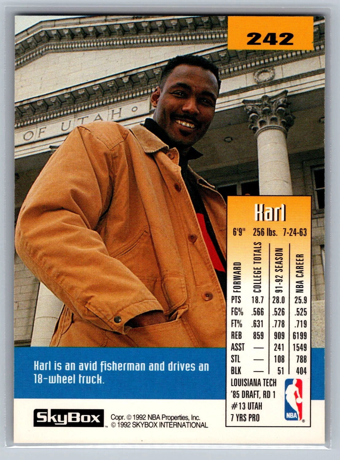 Karl Malone 1992 1993 SkyBox Series Mint Card #242