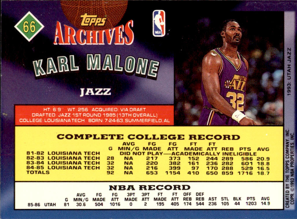 Karl Malone 1992 1993 Topps Archives Series Mint Card #66