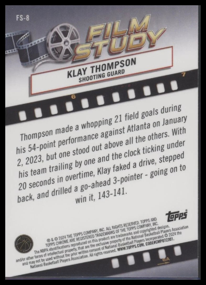 Klay Thompson 2023 2024 Topps Chrome Film Study Series Mint Card #FS-8