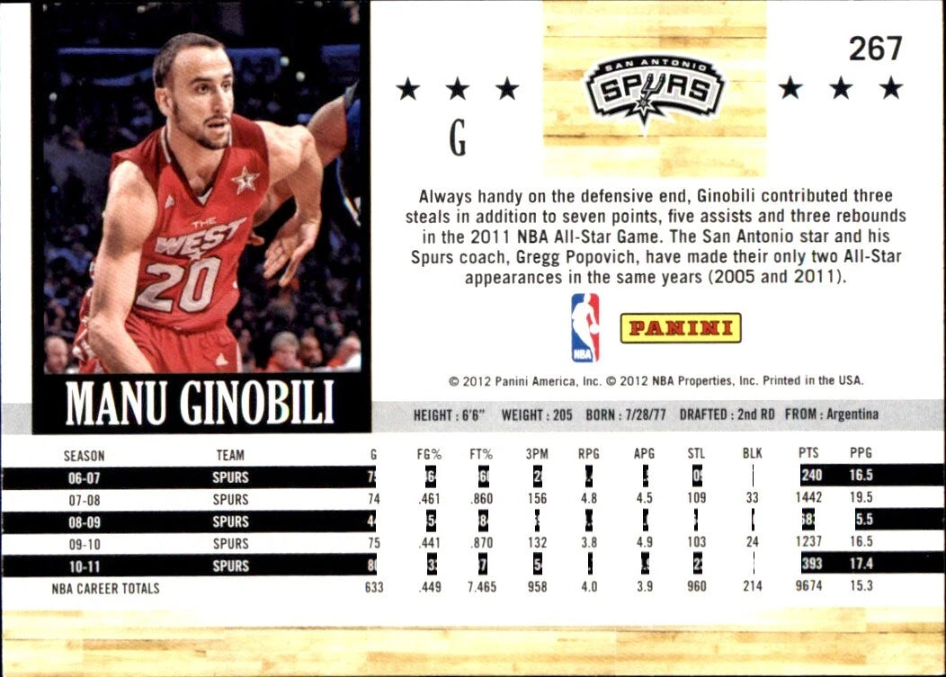 Manu Ginobili 2011 2012 Hoops Series Mint Card #267