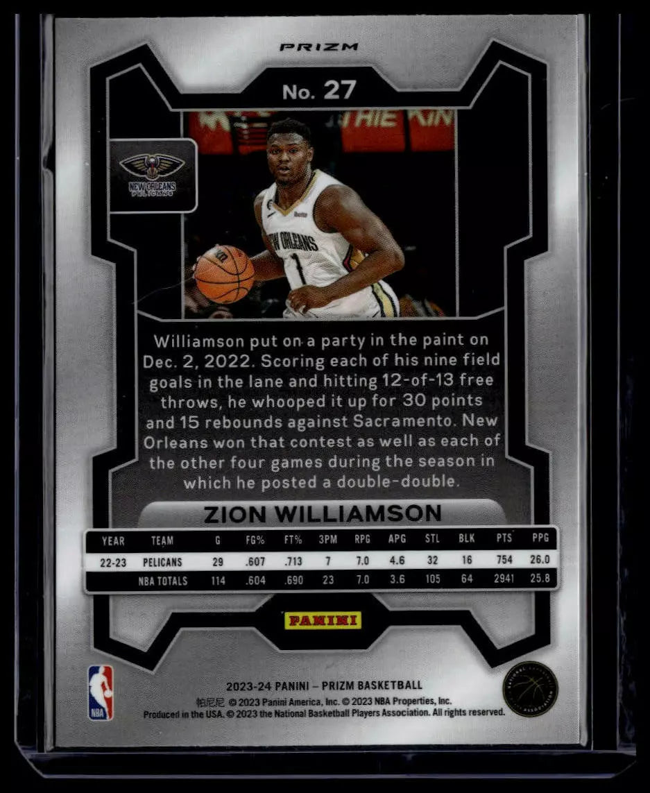 Zion Williamson 2023 2024 Panini Prizm Series Mint Card #27