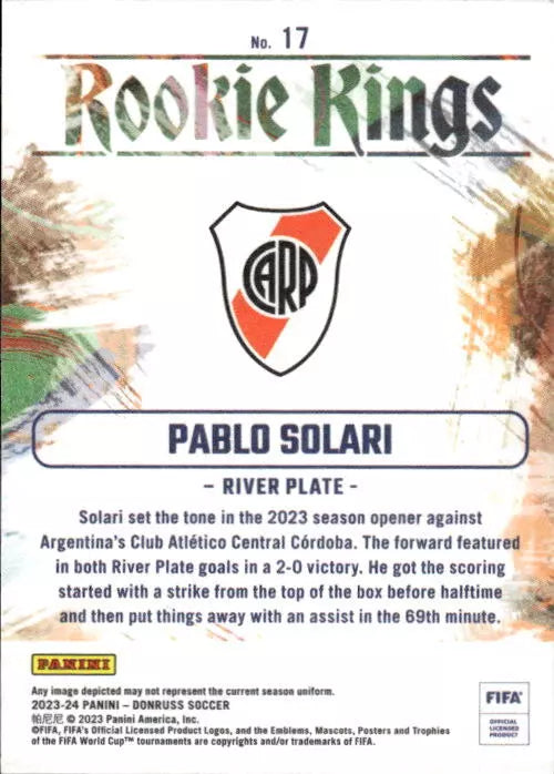 Pablo Solari 2023 2024 Donruss Rookie Kings Series Mint Card #17