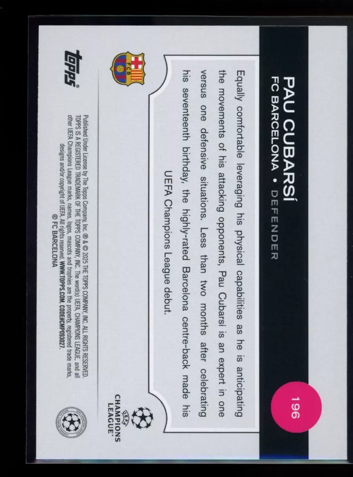 Pau Cubarsí 2025 Topps UEFA Series Mint Card #196