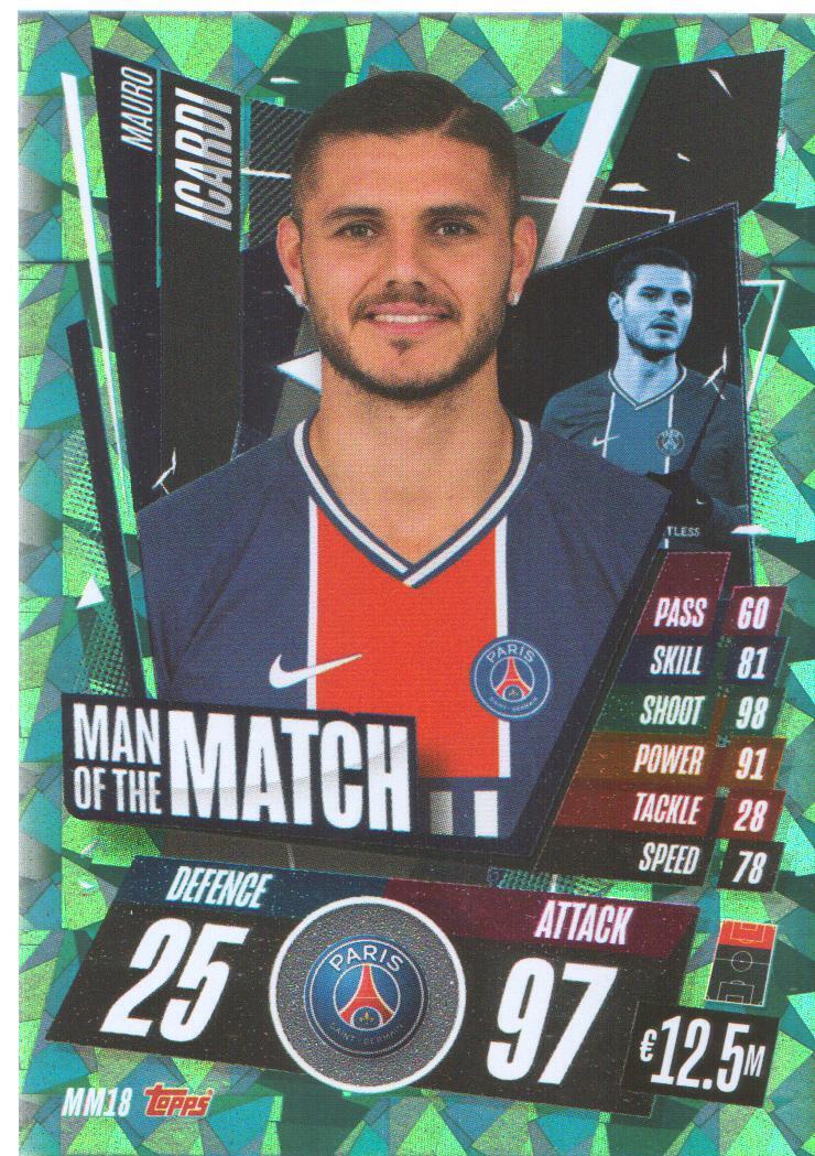 Mauro Icardi 2020 2021 Topps Match Attax UEFA Man Of The Match Series Mint Card #MM18