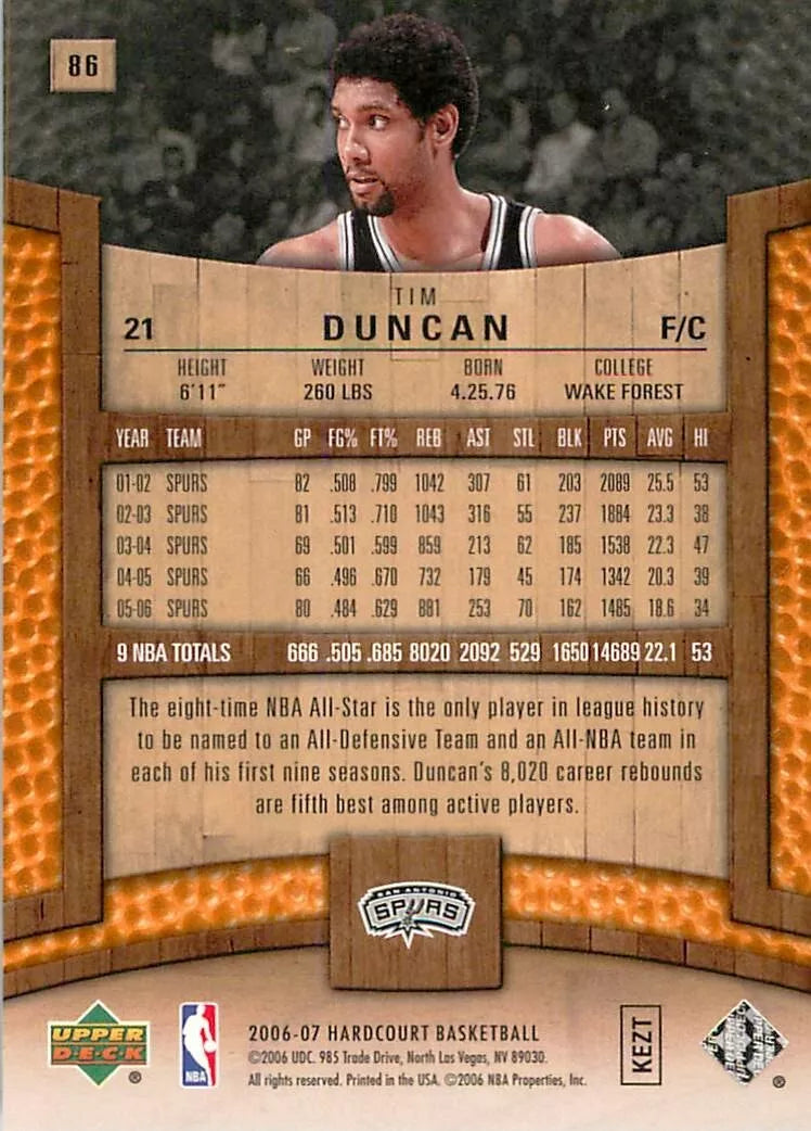 Tim Duncan 2006 2007 Upper Deck Hardcourt Series Mint Card #86