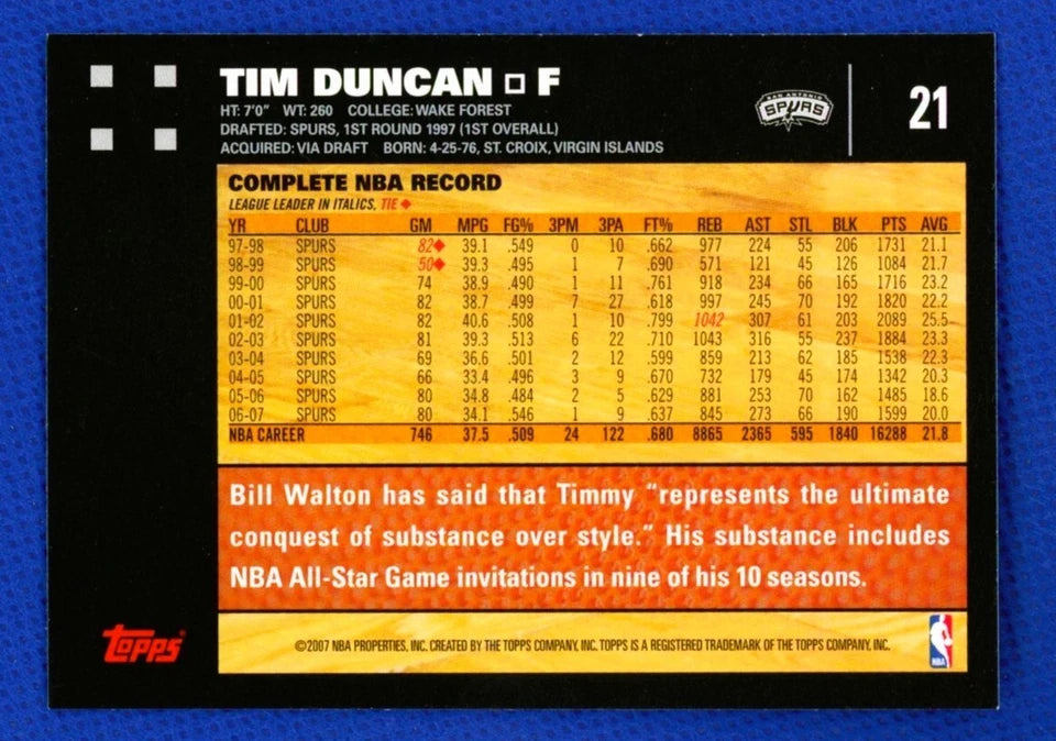 Tim Duncan 2007 2008 Topps 50th Anniversary Mint Card #21