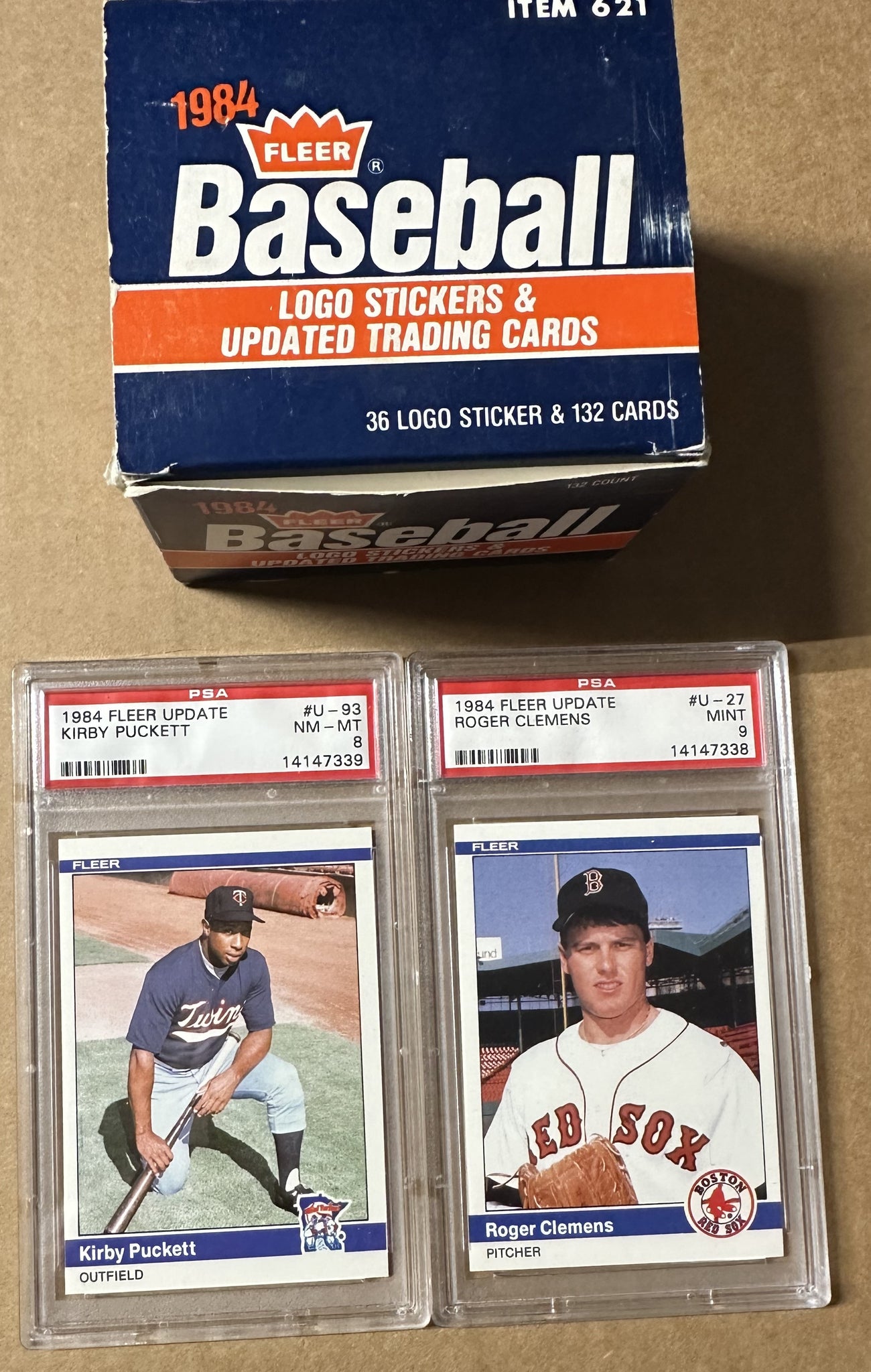 1984 Fleer Baseball Update Factory Set with Roger Clemens Rookie Graded PSA-9 MINT Serial #14147338 and Kirby Puckett PSA-8