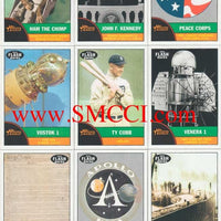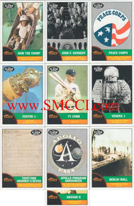 This is the 2010 Topps Heritage News Flashbacks complete mint 10 card insert set. Highlights 10 bigs news events from 1961: Peace Corps is formed, John F. Kennedy inauguration, Ham the Chimp in Space, Venera 1 Probes Venus, Hassan II Rules Morocco, 23rd Amendment ratified, Apollo program announced, Berlin Wall begins, Vostok 1 puts 1st man in space and Ty Cobb passes away.