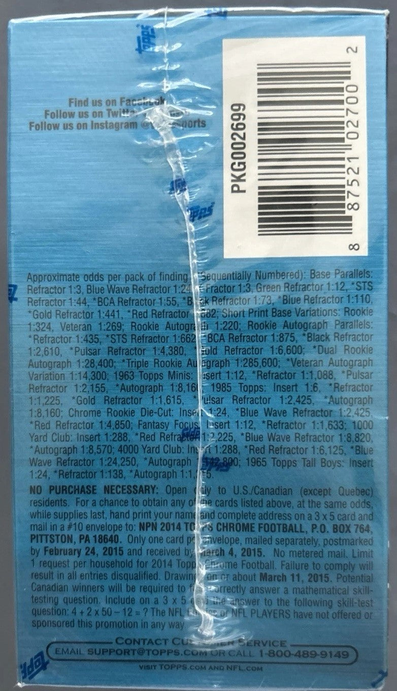 2014 Topps Chrome Football Blaster Box with Chance for Rookie Cards of Aaron Donald, Davante Adams, Mike Evans and MANY OTHERS
