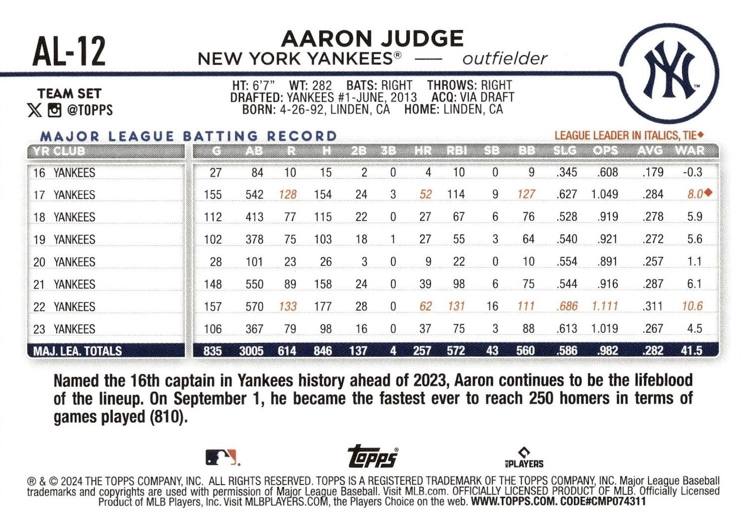 2024 Topps American League All Star Standouts Factory Sealed Limited Edition 17 Card Team Set Featuring Mike Trout and Aaron Judge Plus