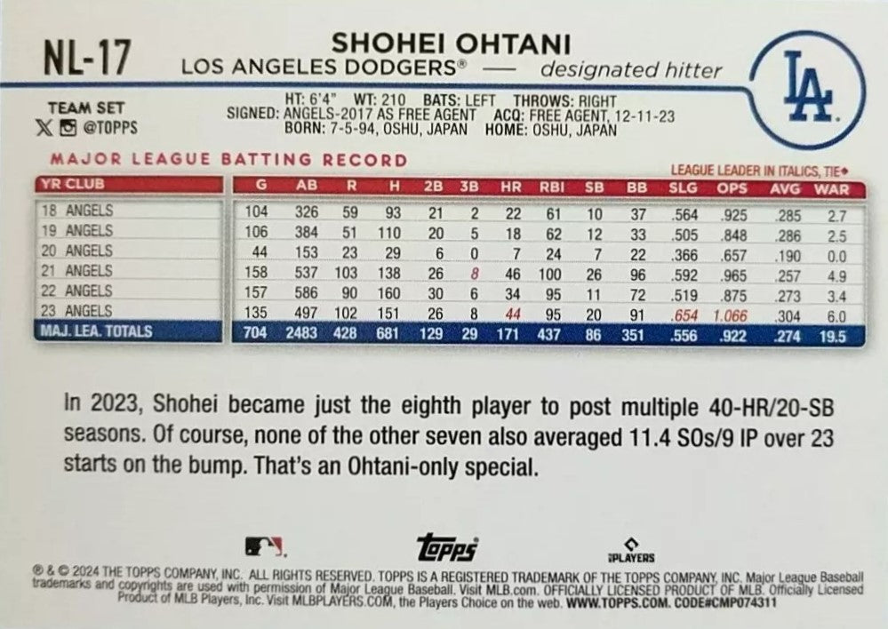 2024 Topps National League All Star Standouts Factory Sealed Limited Edition 17 Card Team Set Featuring Ronald Acuna, Mookie Betts, Bryce Harper and Shohei Ohtani Plus