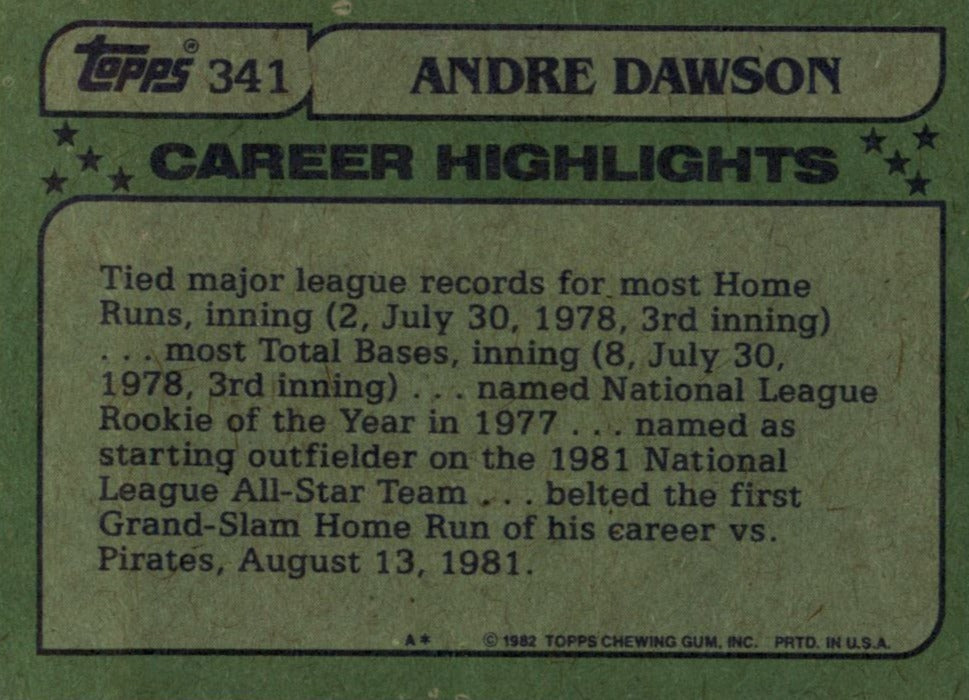 Andre Dawson 1982 Topps All-Star Series Mint Card #341
