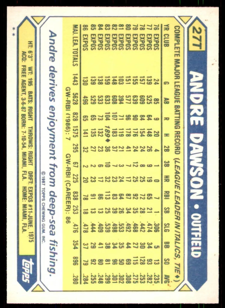 Andre Dawson 1987 Topps Traded Series Mint Card #27T