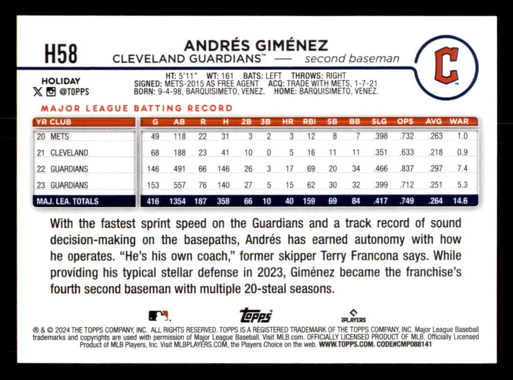 Andres Gimenez 2024 Topps Holiday Tree Series Mint Card #H58