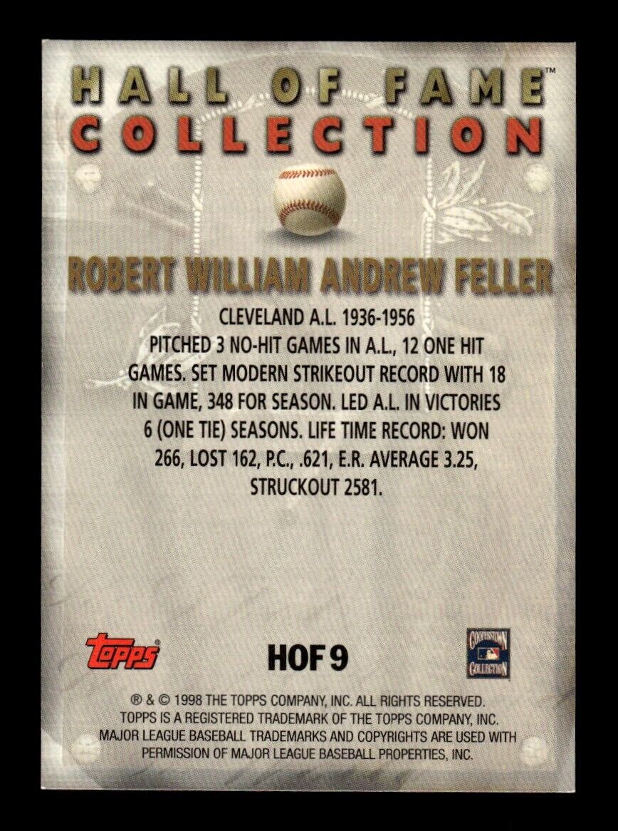 Bob Feller 1998 Topps Hall Of Fame Collection Series Mint Card #HOF9