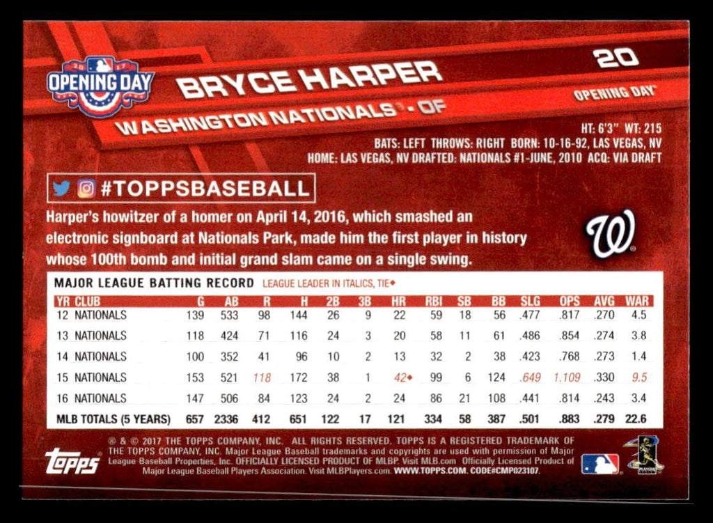 Bryce Harper 2017 Topps Opening Day Series Mint Card #20