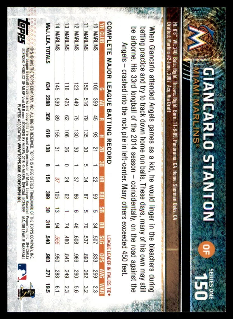 Giancarlo Stanton 2015 Topps Series Mint Card #150