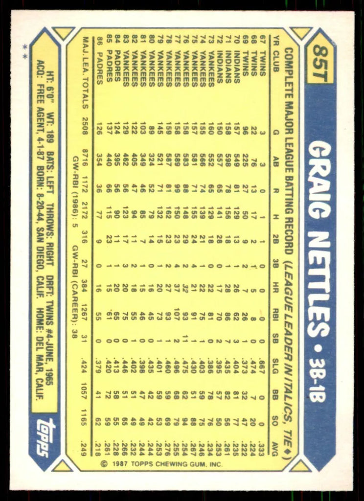 Graig Nettles 1987 Topps Traded Series Mint Card #85T