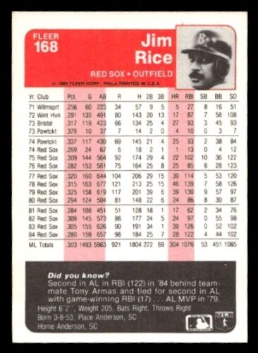 Jim Rice 1985 Fleer Series Mint Card #168