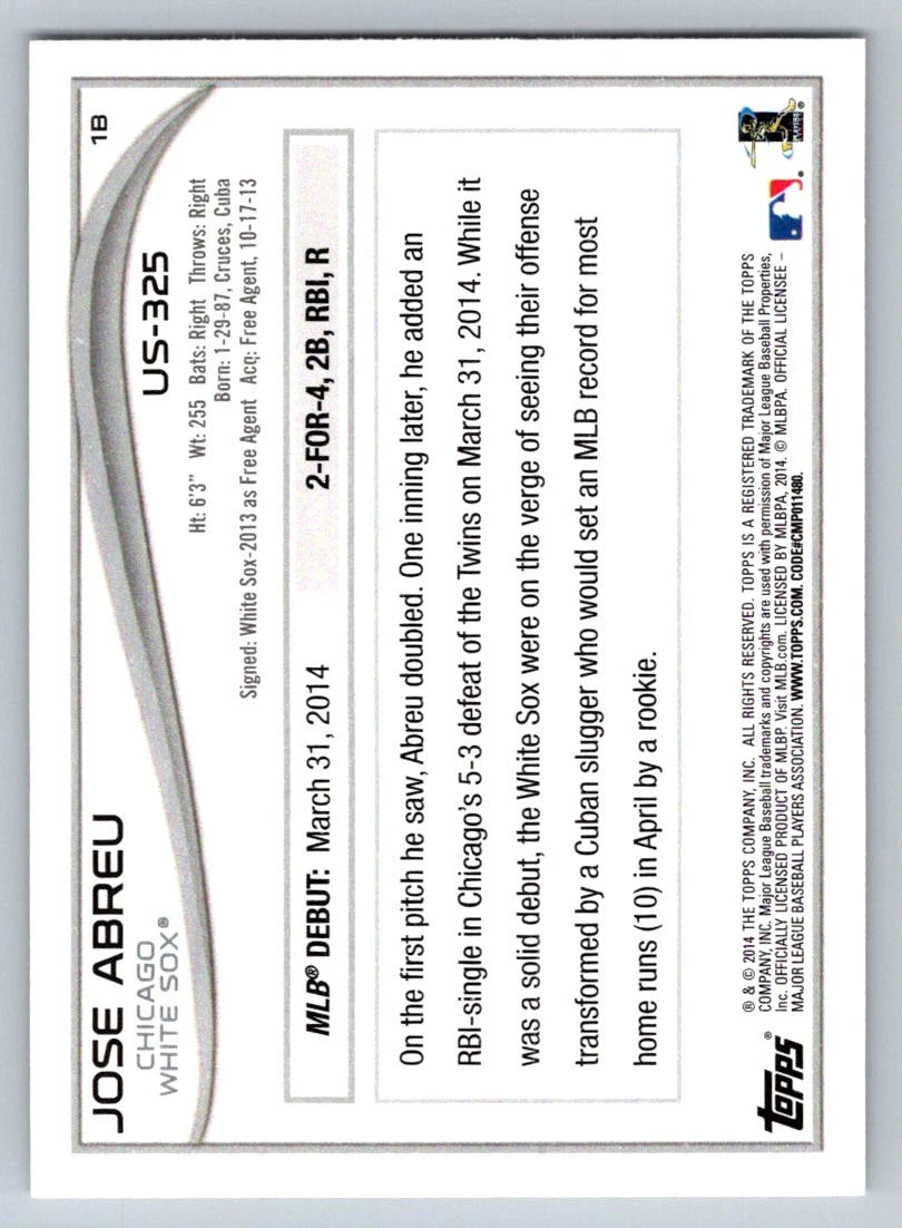 Jose Abreu 2014 Topps Traded Update Series Mint Rookie Debut Card #US-325