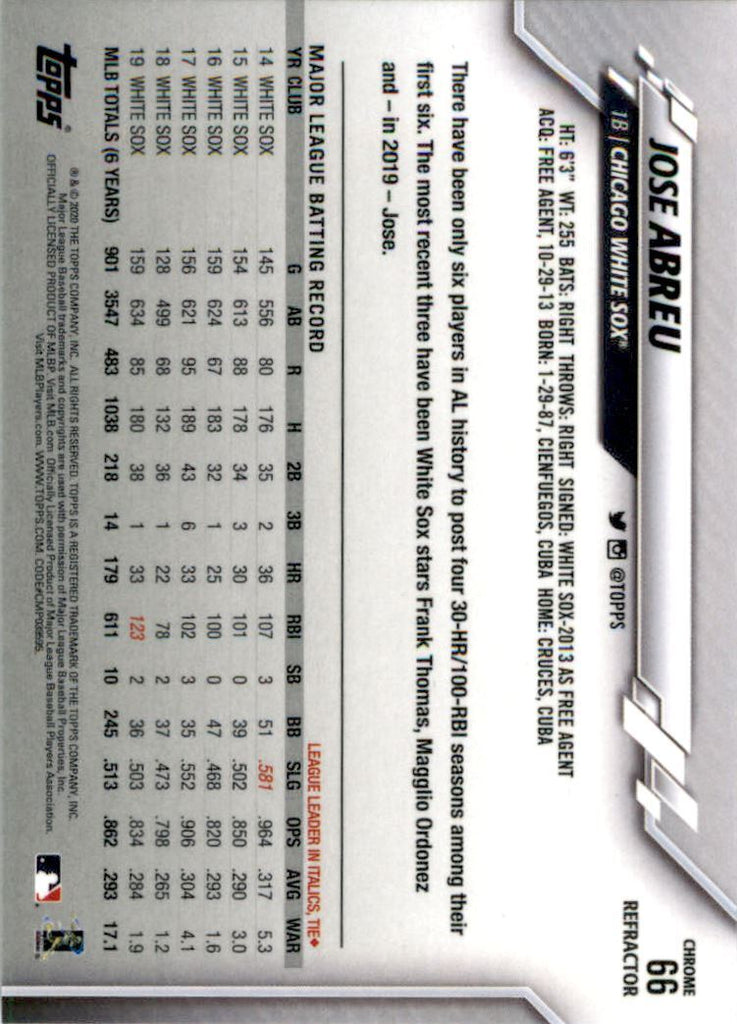 Jose Abreu 2020 Topps Chrome Sepia Refractor Series Mint Card #66