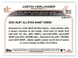 Justin Verlander 2022 Topps Chrome Update All-Star Game Series Mint Card #ASGC-45