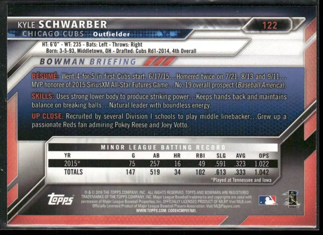 Kyle Schwarber 2016 Bowman Series Mint Rookie Card #122