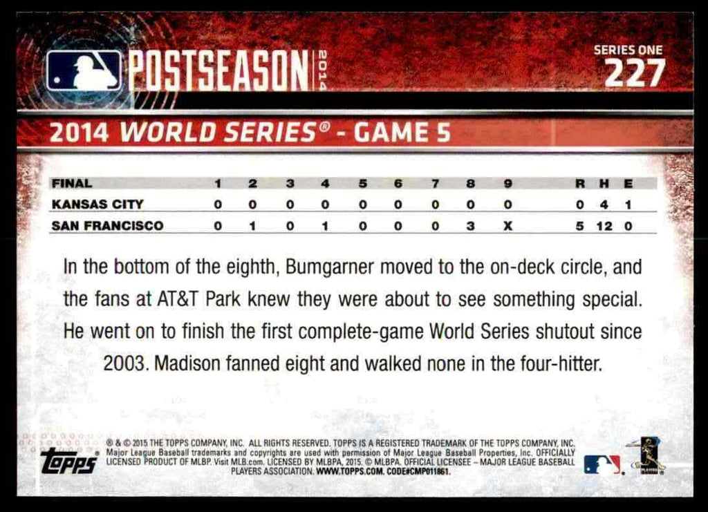 Madison Bumgarner 2015 Topps World Series Mint Card #227