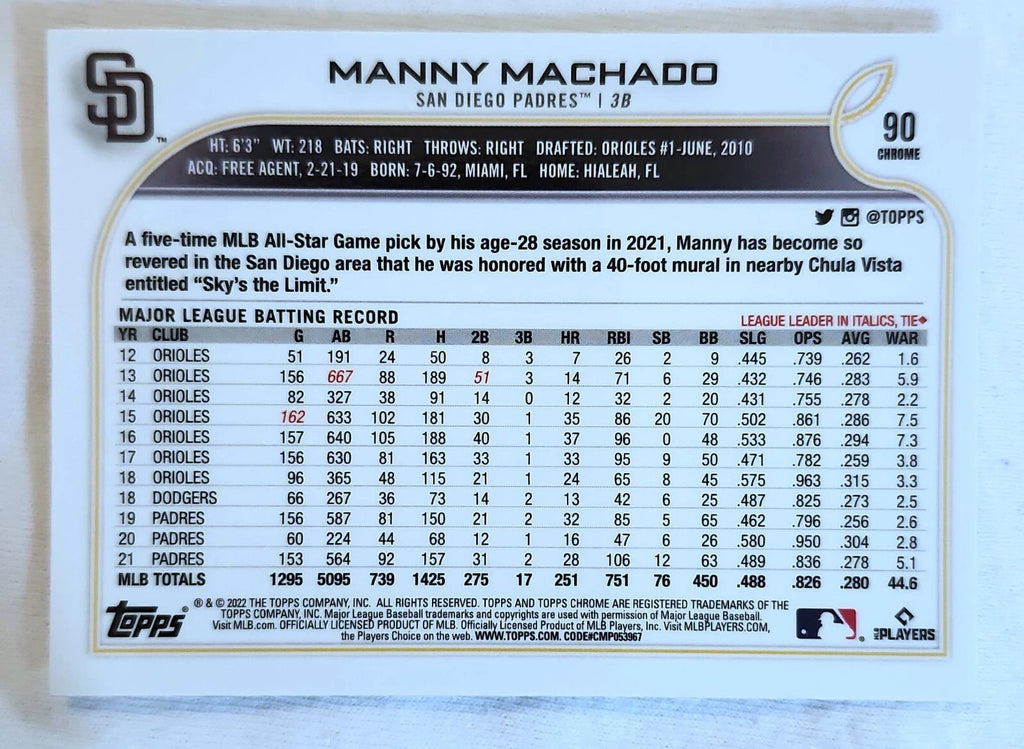 Manny Machado 2022 Topps Chrome Series Mint Card #90
