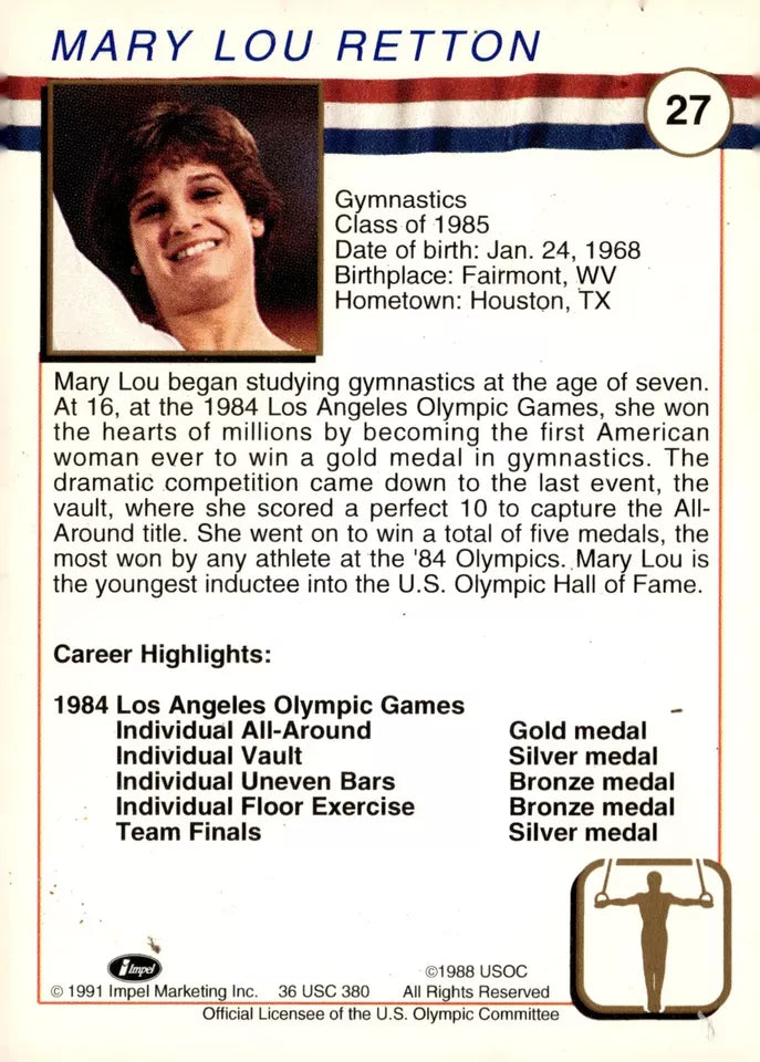 Mary Lou Retton 1991 Impel U.S. Olympic Hall of Fame Series Mint Card #27