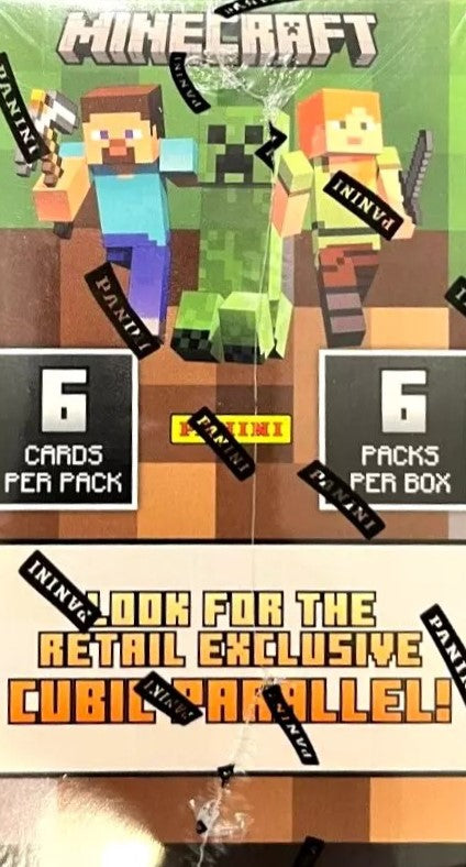 This is a Brand New Minecraft Trading Cards 2024 Factory Sealed Blaster Box made by Panini with Possible Blaster EXCLUSIVE Cubic Parallels Plus Chance for Ultra Rare Color Blast and Minecraft Milestones Inserts. Each sealed box contains 6 packs of 6 cards for a total of 36 cards per box.