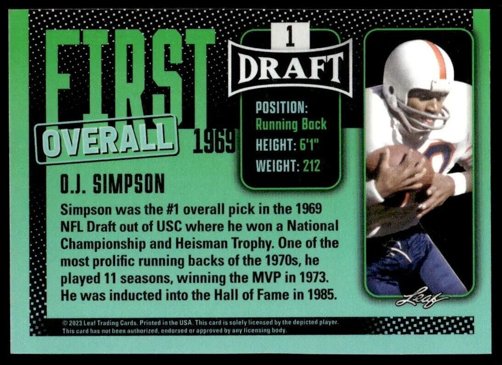 O.J. Simpson 2023 Leaf Draft First Overall Series Mint Card #1