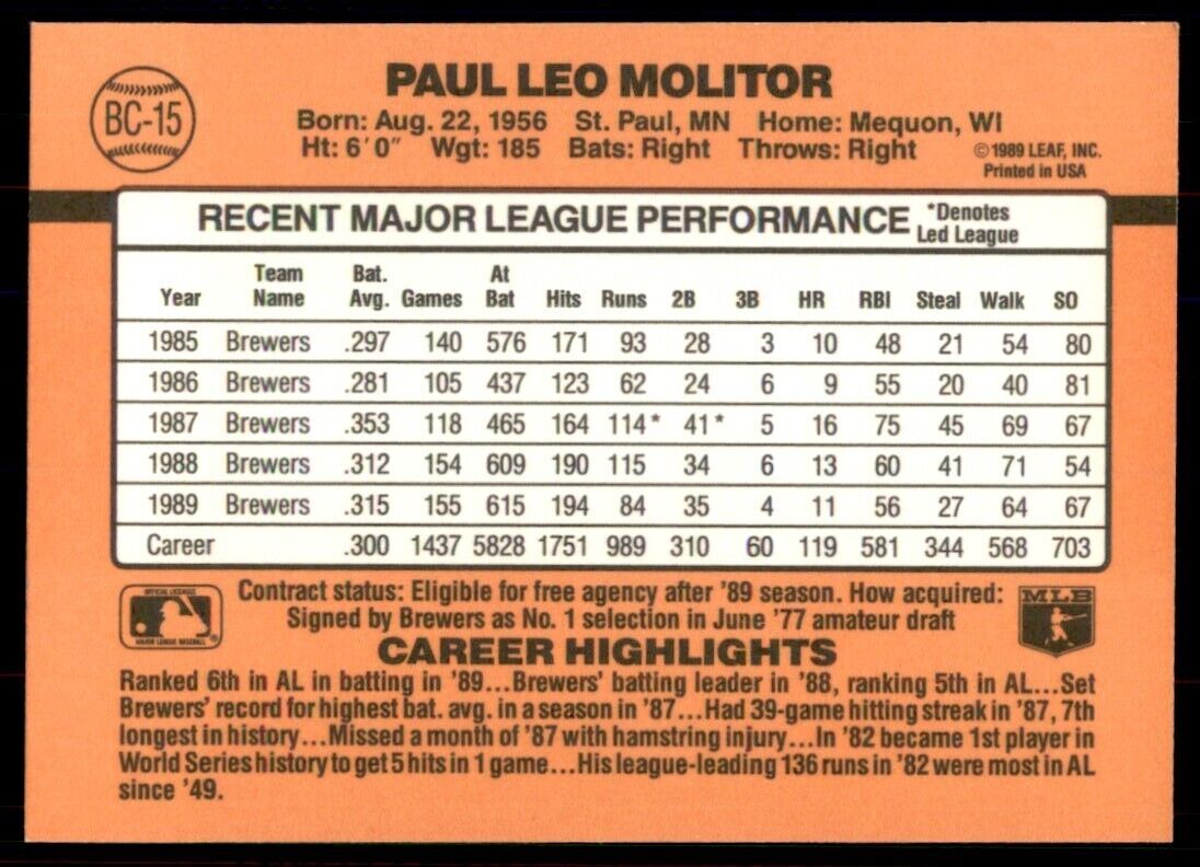 Paul Molitor 1990 Donruss MVP Series Mint Card #BC15