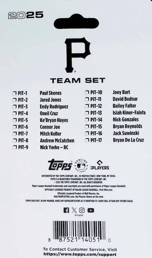 Pittsburgh Pirates 2025 Topps Factory Sealed 17 Card Team Set with a Rookie Card of Nick Yorke