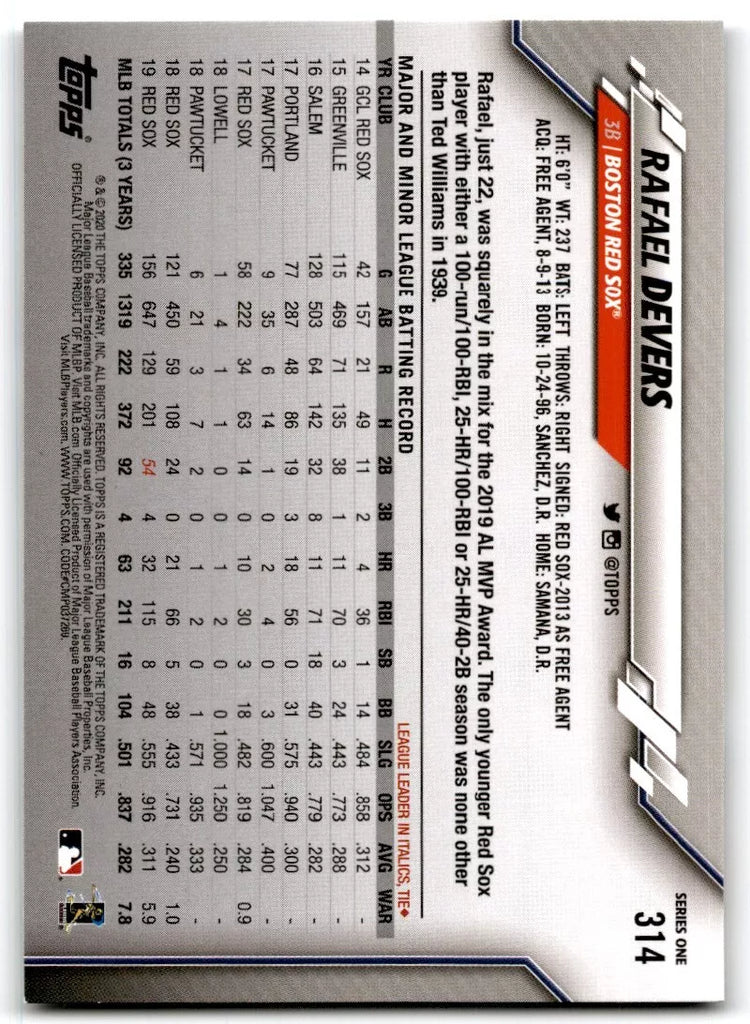 Rafael Devers 2020 Topps Series Mint Card #314