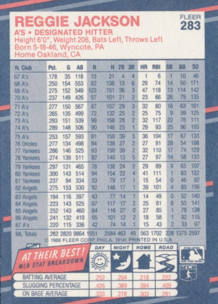 Reggie Jackson 1988 Fleer Series Mint Card #283