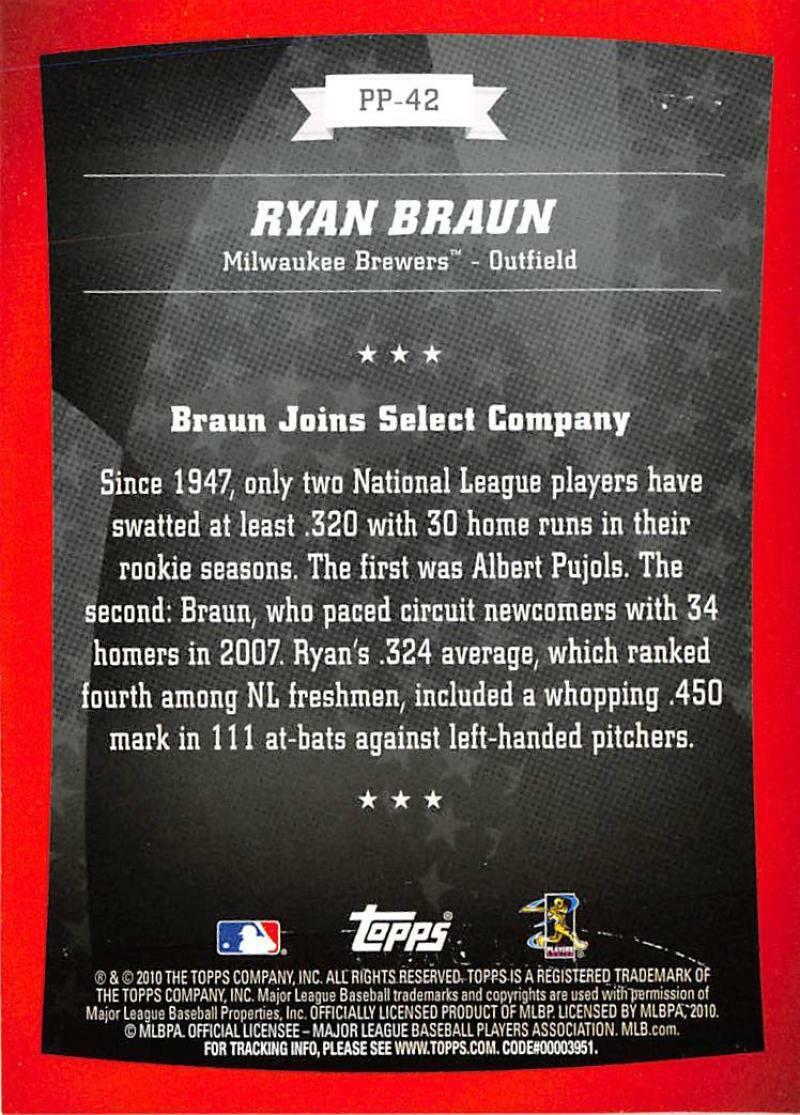 Ryan Braun 2010 Topps Peak Performance Series Mint Card #PP-42