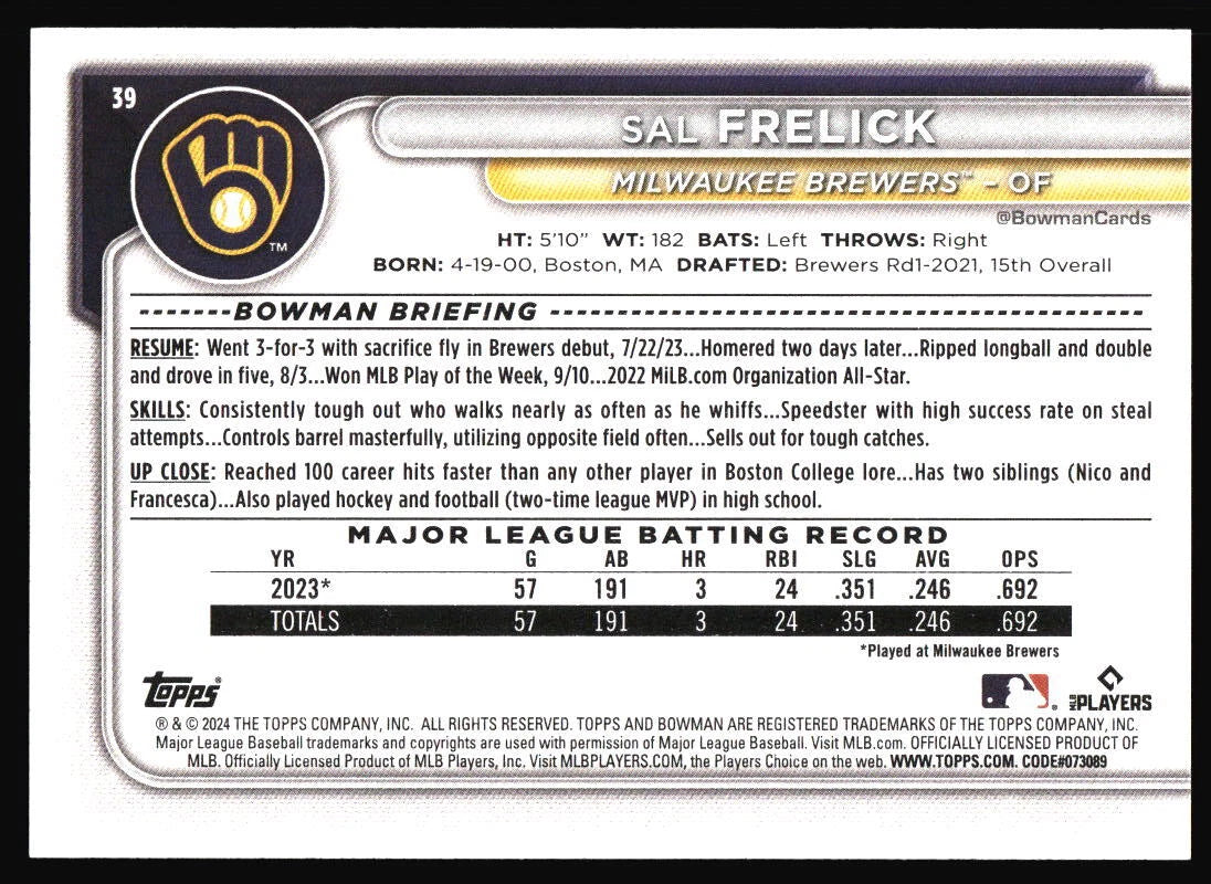 Sal Frelick 2024 Bowman Mint Rookie Card #39