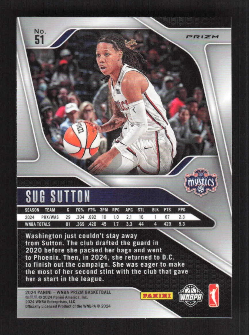 Sug Sutton 2024 2025 Panini Prizm WNBA Blue Velocity Series Mint Card #51