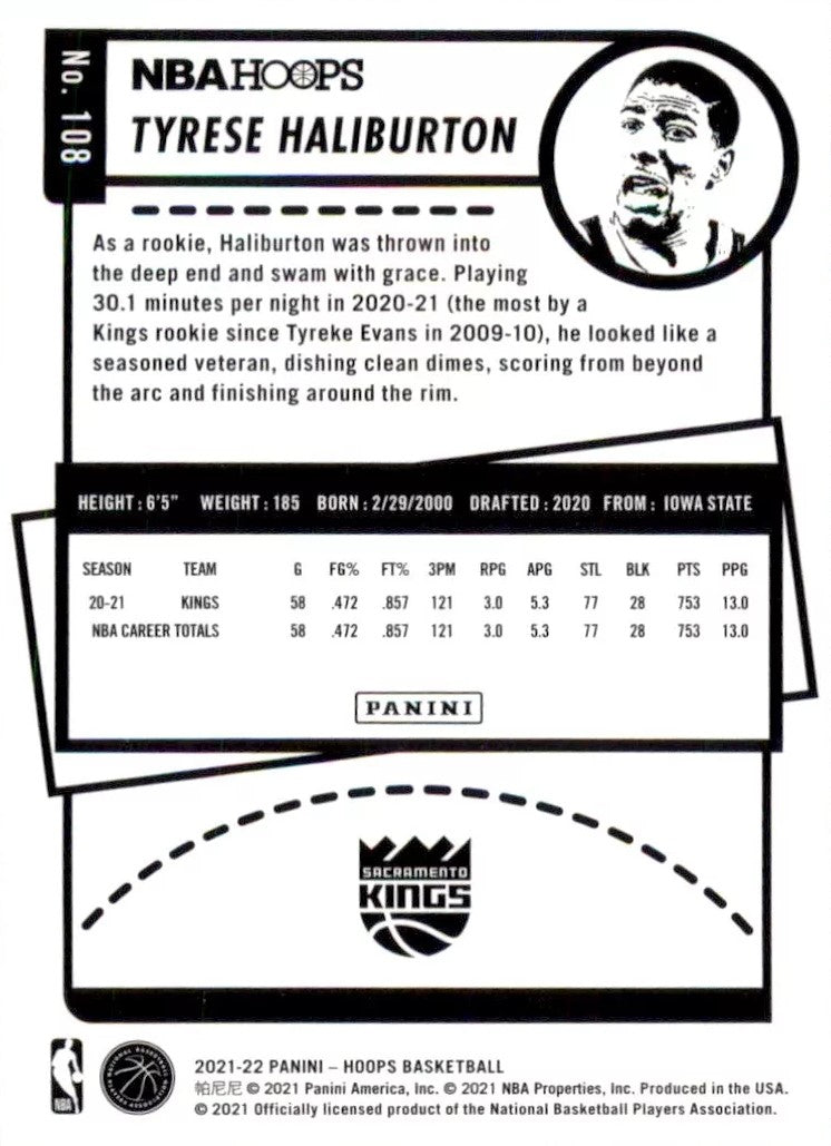 Tyrese Haliburton 2021 2022 NBA Hoops Series Mint Card #108